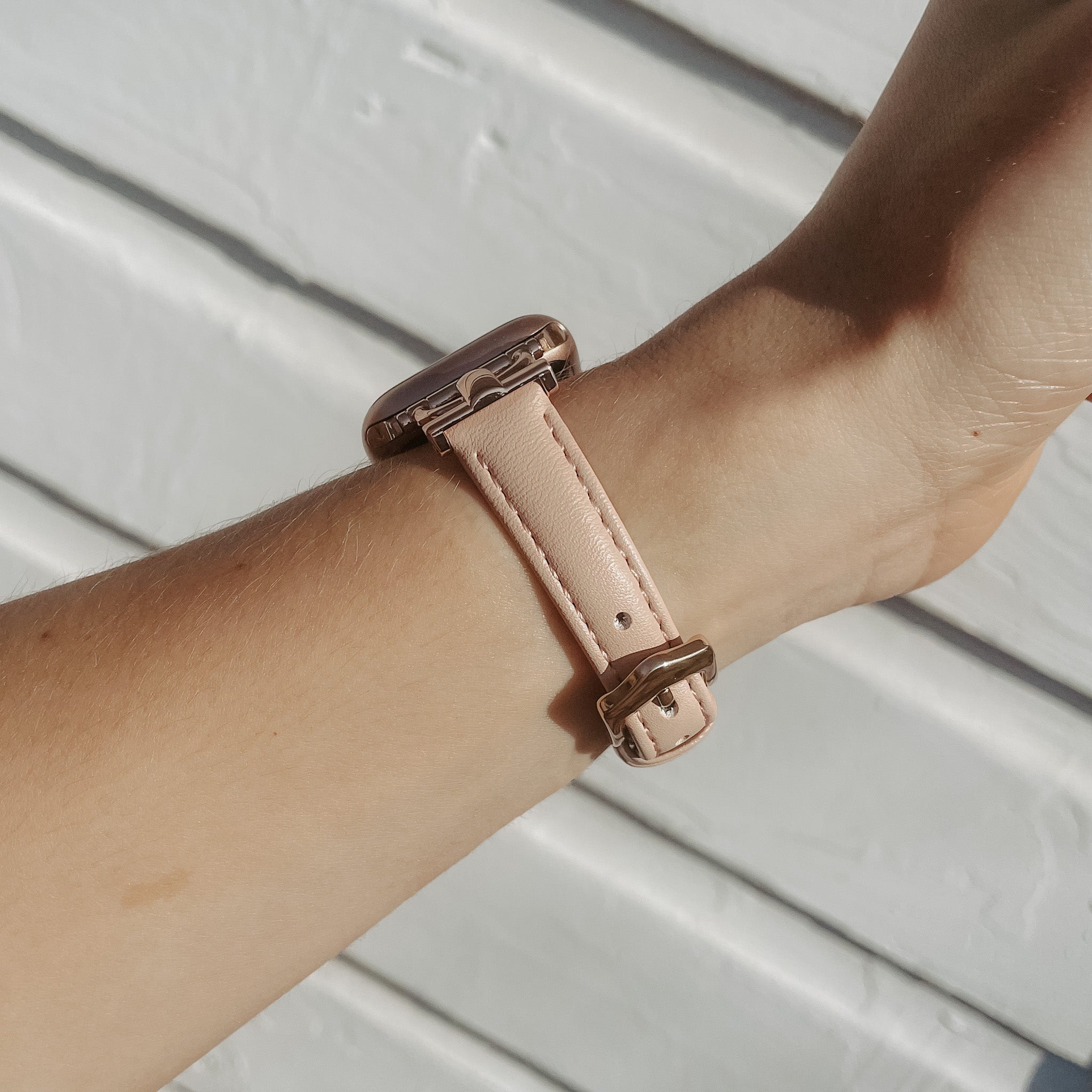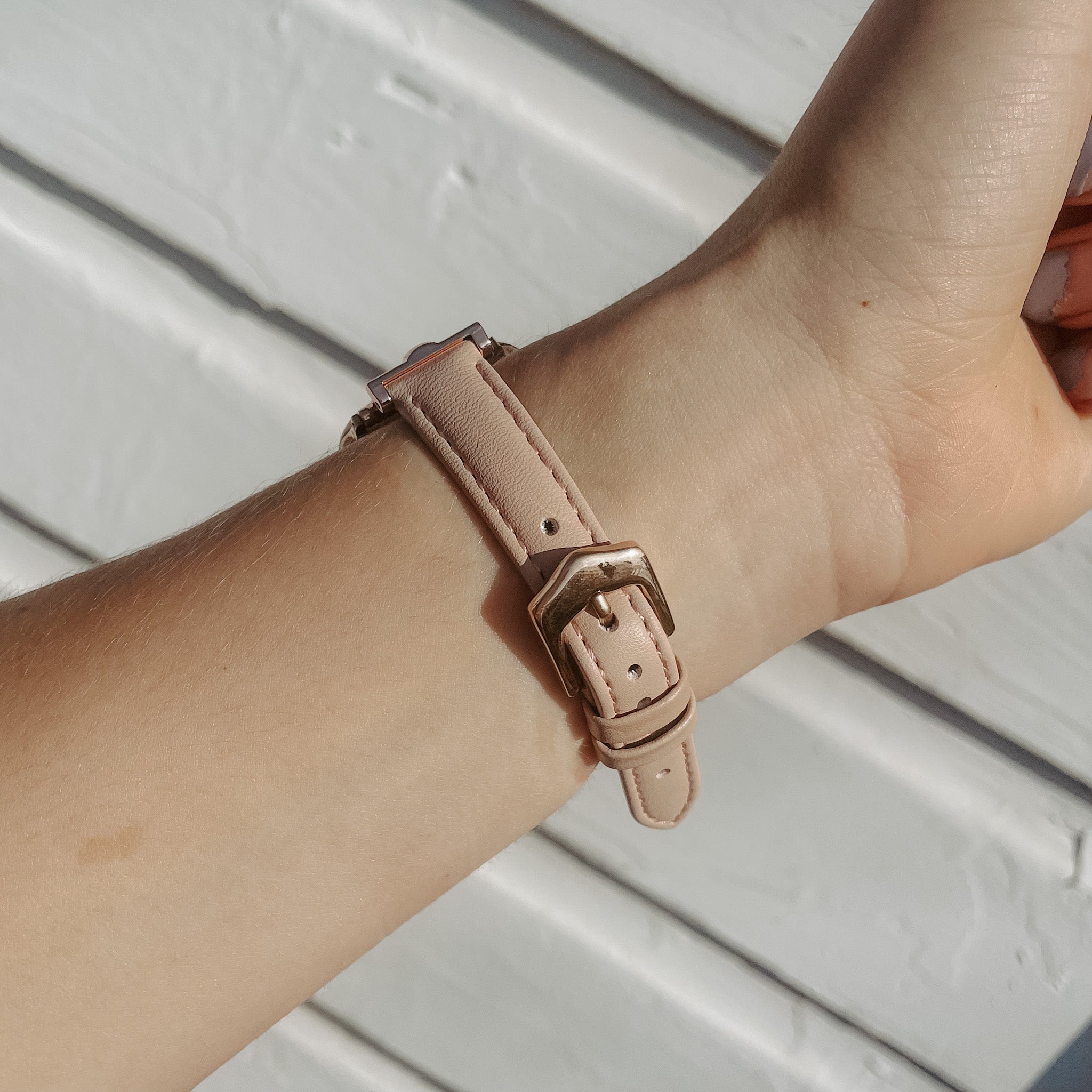 Upgrade your Apple Watch style with our sophisticated beige leather link band. This high-quality band combines the timeless elegance of leather with a minimalist link design, creating a luxurious and versatile accessory.