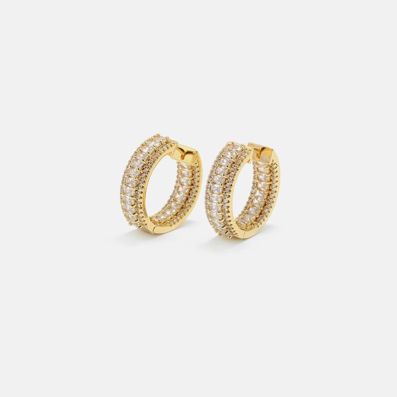 Radiate elegance with our 18K Gold Plated CZ hoop earrings, adorned with dazzling cubic zirconia stones. Make a statement of sophistication and style with these must-have earrings that effortlessly elevate any outfit.