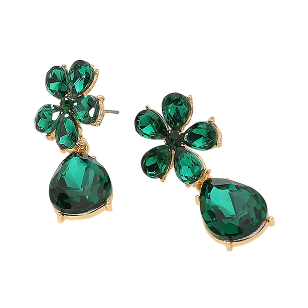 Flower Teardrop Stone Cluster Dangle Evening Earrings