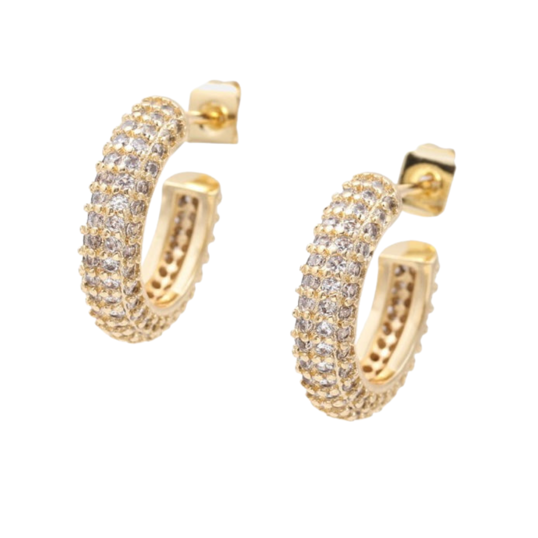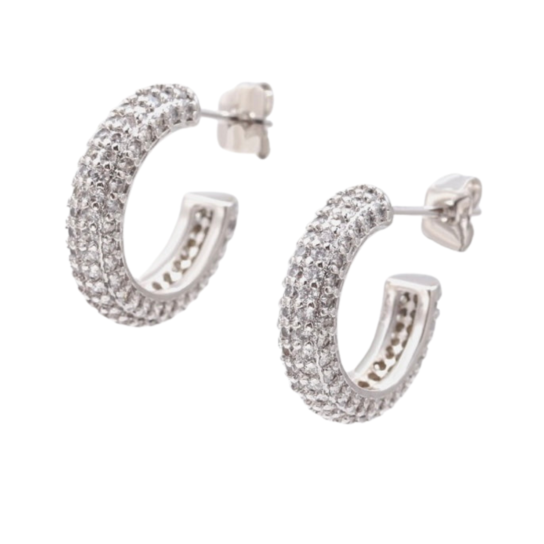 Your everyday hoop with some bling! Complete your look with our sparkling Pave Hoops. These intricately designed earrings feature delicate pave CZs for a touch of elegance and shine. Make a statement without going overboard.