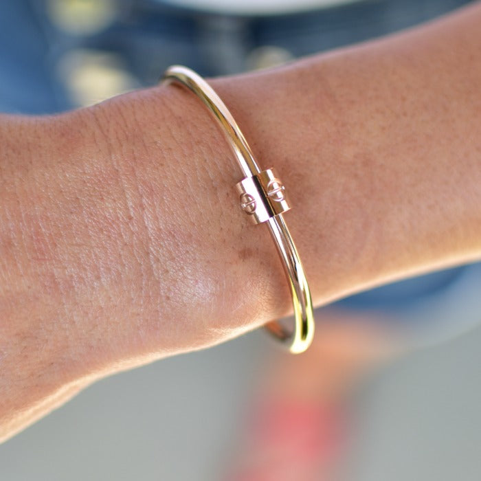 An everyday favorite - our stainless steel bracelet features a simple design that's perfect for layering. Comes in silver, gold, and rose gold.