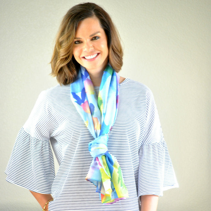 Final Sale-Printed on a gauzy and lightweight 100% silk habotai, this vibrant 40" x 70" scarf features original watercolor artwork by Chioma Ebinama and can be worn as a kimono, sarong, scarf, shawl, or wrap!