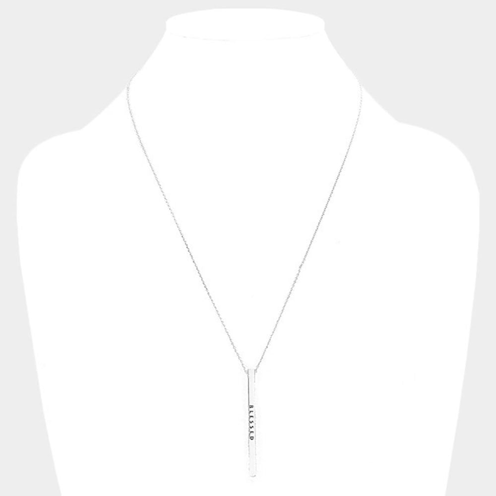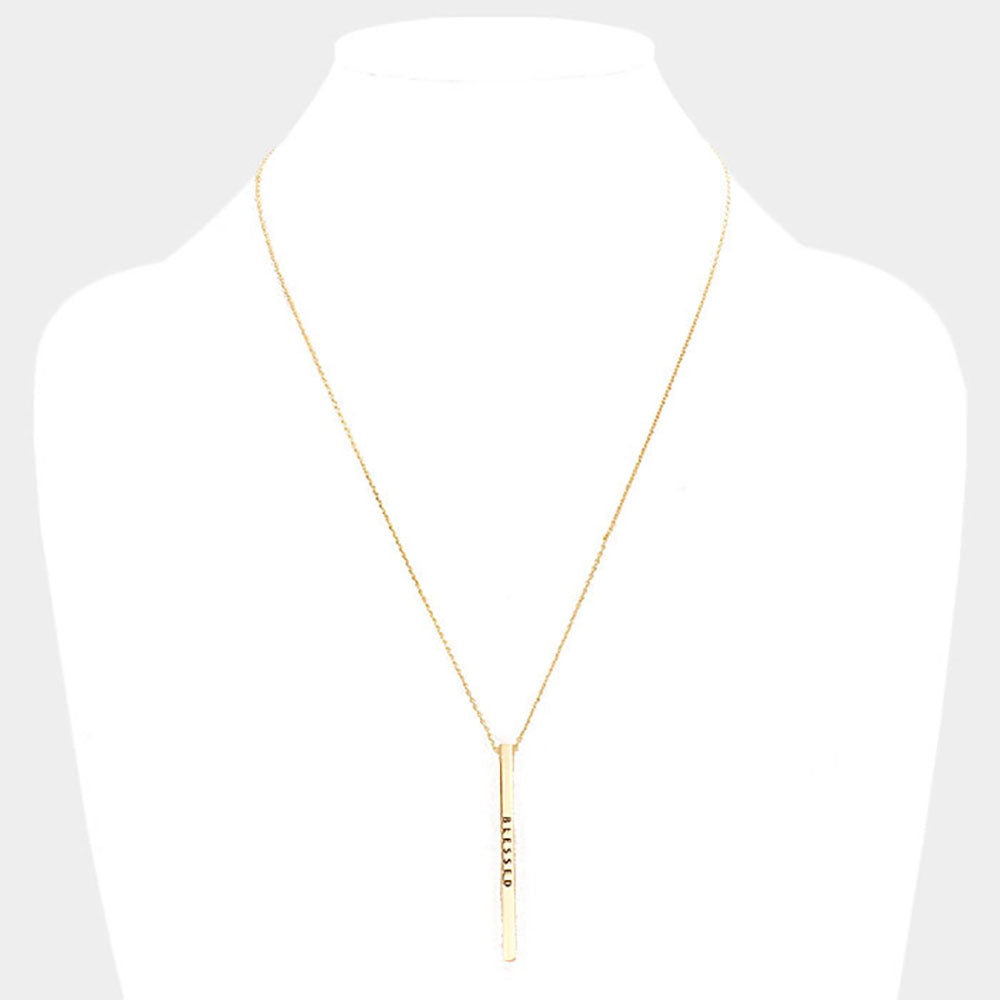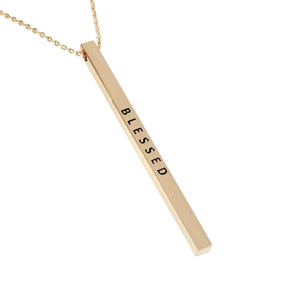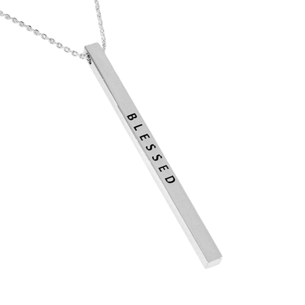 Show gratitude with this elegant vertical bar necklace, delicately engraved with the word "BLESSED". A timeless piece that blends meaning with modern style, it's perfect for everyday wear or heartfelt gifting. Whether layered or worn solo, its sleek design adds a touch of quiet sophistication to any look.