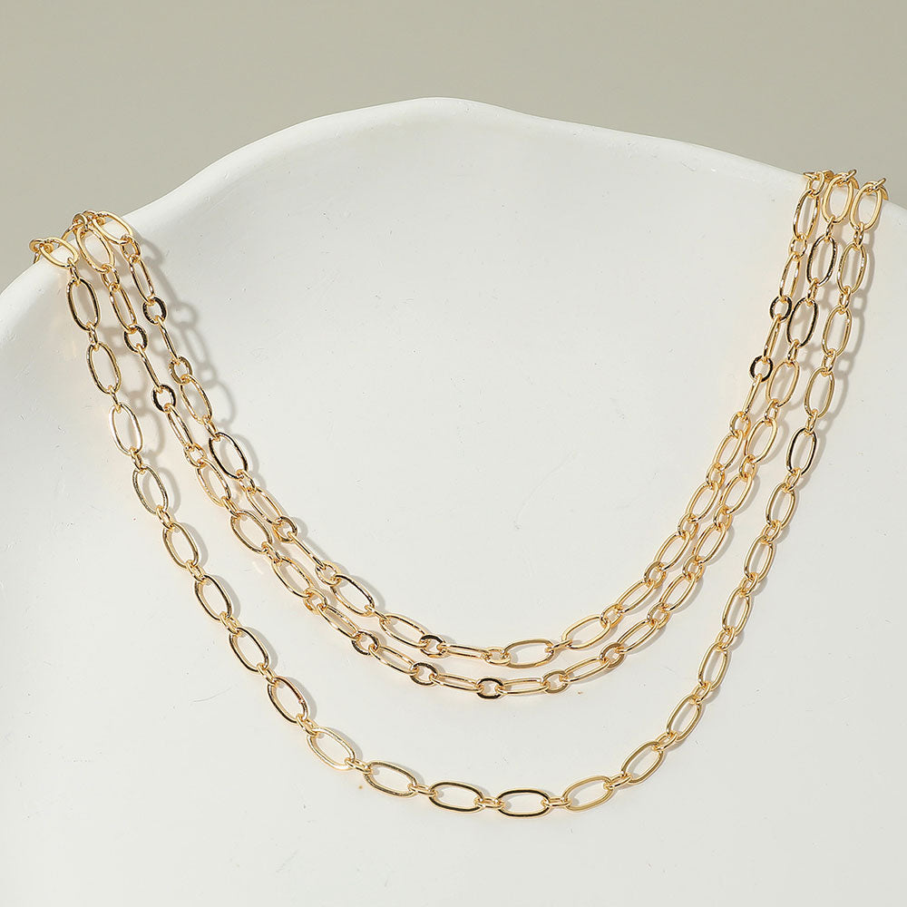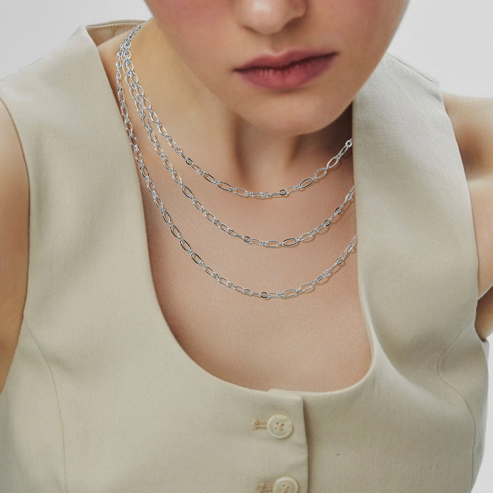 Add effortless style with this layered oval link chain necklace, designed to bring modern elegance to any look. Perfect for layering or wearing solo, its sleek links create a versatile accessory that transitions seamlessly from everyday wear to special occasions.