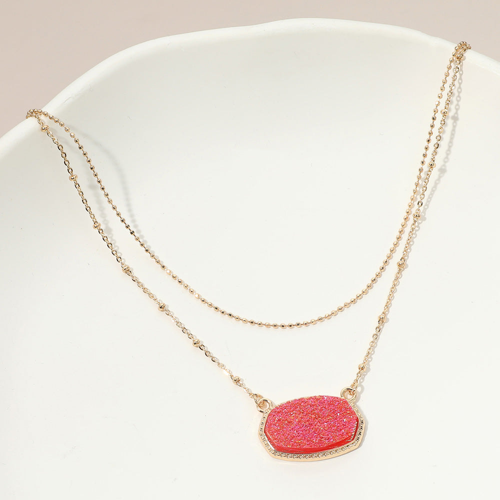 Druzy Pendant Accent Layered Necklace
