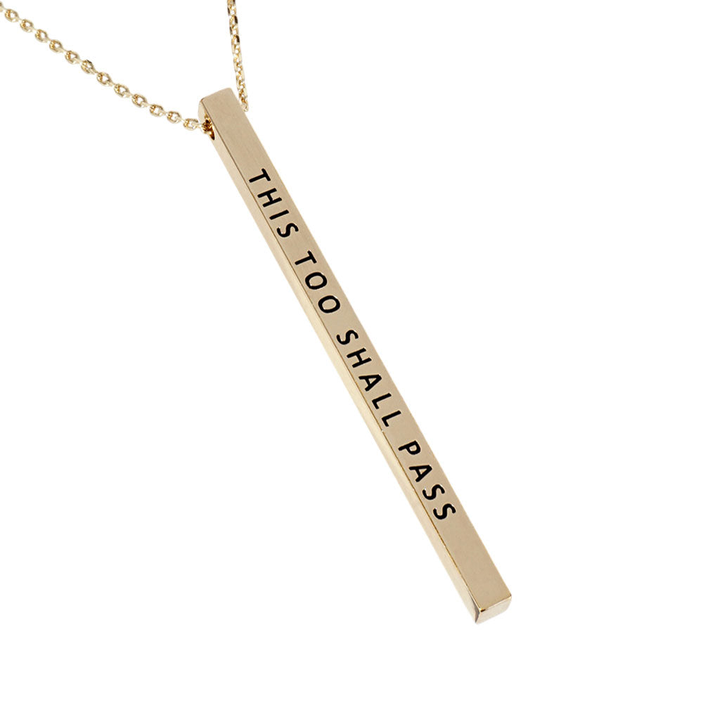 "THIS TOO SHALL PASS" Bar Pendant Necklace