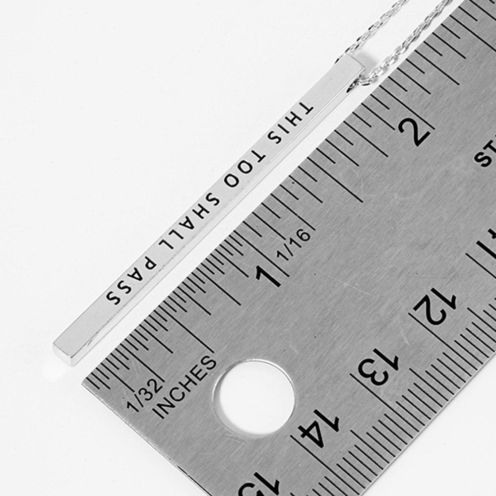 Wear strength and serenity with this engraved vertical bar necklace, etched with the comforting phrase "THIS TOO SHALL PASS". A graceful symbol of resilience and hope, this piece offers gentle encouragement through life's challenges. Ideal as a meaningful gift or a personal reminder of perseverance and inner peace.