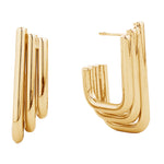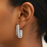 Contemporary hoop earring featuring a layered multi-bar structure with a geometric silhouette. Designed to stand out, these earrings bring modern elegance and artistic flair, making them a striking statement piece for both casual and formal looks.
