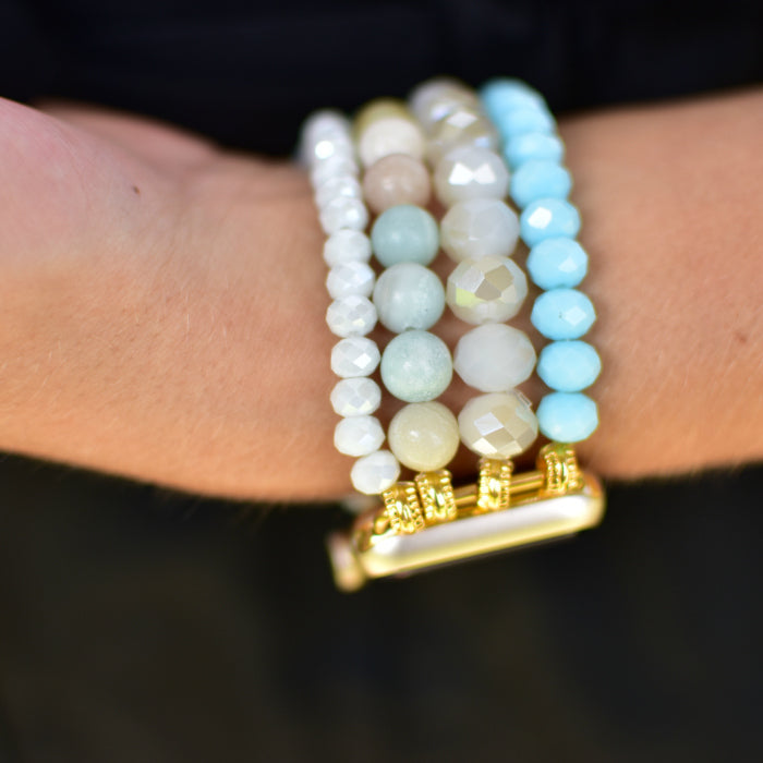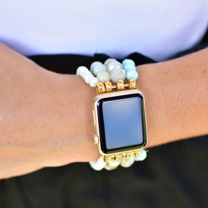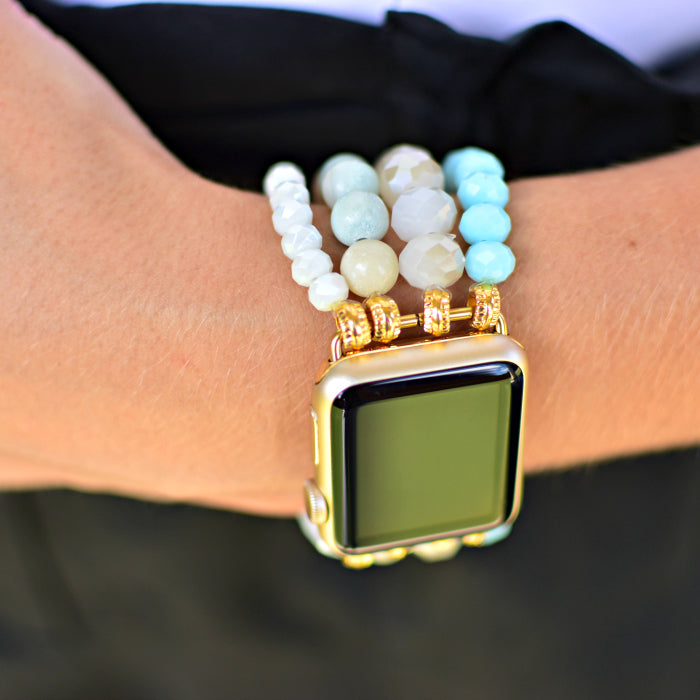 Add instant style to your Apple Watch with this pre-layered turquoise and beaded watch band! Beaded bracelets stretch to fit.